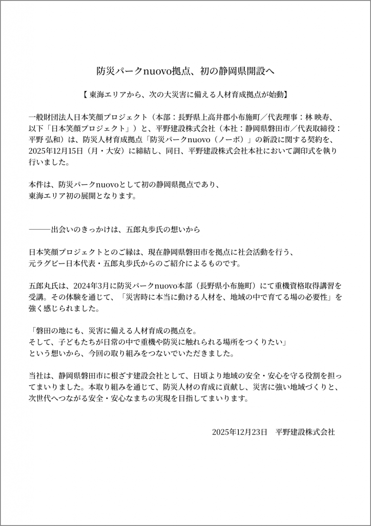 一般財団法人日本笑顔プロジェクトは、「平時を楽しみ、有事に備える」を