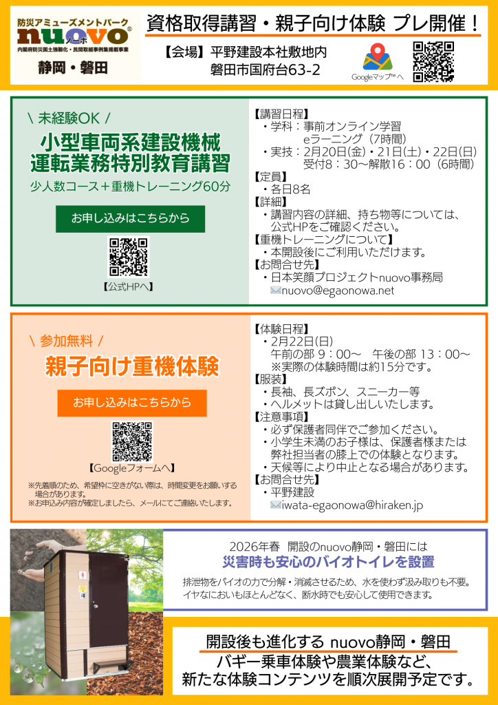 防災アミューズメントパークnuovo静岡・磐田 開設に先立ち、